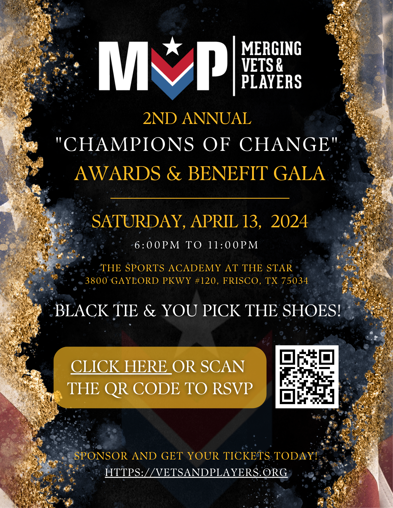 Back to All Events 2nd Annual Awards & Benefit Gala Saturday, April 13, 2024 6:00 PM 10:00 PM The Star in Frisco 3800 Gaylord Parkway Frisco, TX, 75034 United States (map) Google Calendar ICS