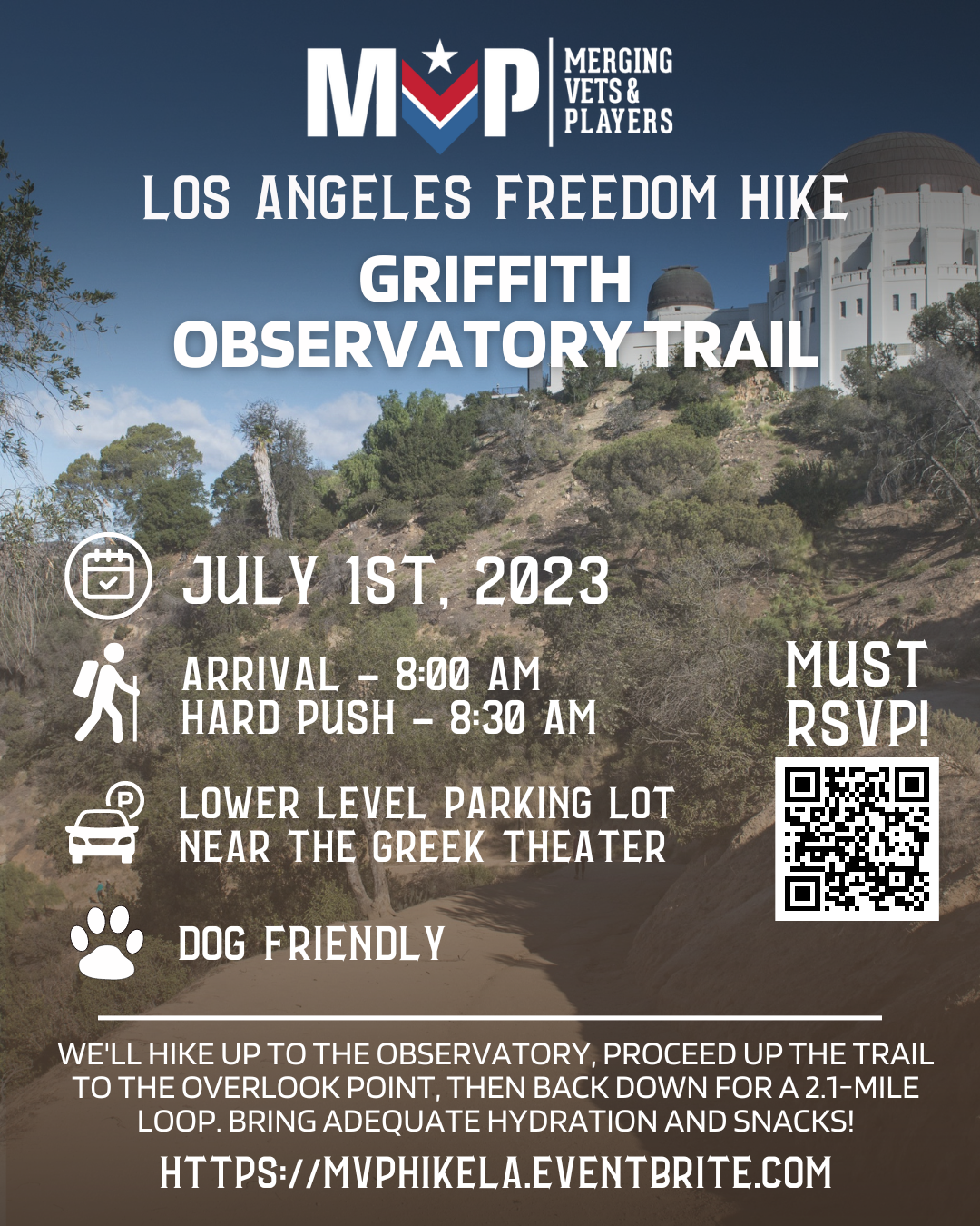 Back to All Events Los Angeles Freedom Hike Saturday, July 1, 2023 8:00 AM 3:00 PM Griffith Observatory Trail 2715 North Vermont Canyon Road Los Angeles, CA, 90027 United States (map) Google Calendar ICS View fullsize