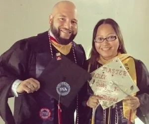 To regain control of his life, he joined other veterans and headed to the VA to seek counseling. With his mental health needs met, he attended a community college, transferred to University of Nevada Las Vegas, graduating six years later with a master’s degree in social work. While in school, he served as the Student Veterans of America Chapter President for the Rebel Veterans Organization.